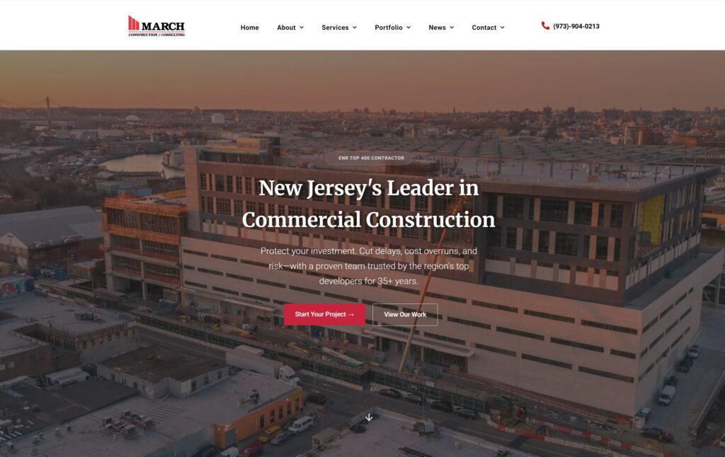- 2018-2020: Joined as a Marketing Associate, creating promotional materials, brochures, proposals, and managing social media content. Redesigned March’s website twice on Squarespace and later transitioned it to WordPress, enhancing SEO, speed, and security. Continued as the sole photographer and videographer for all jobsite updates, groundbreaking ceremonies, and company events.