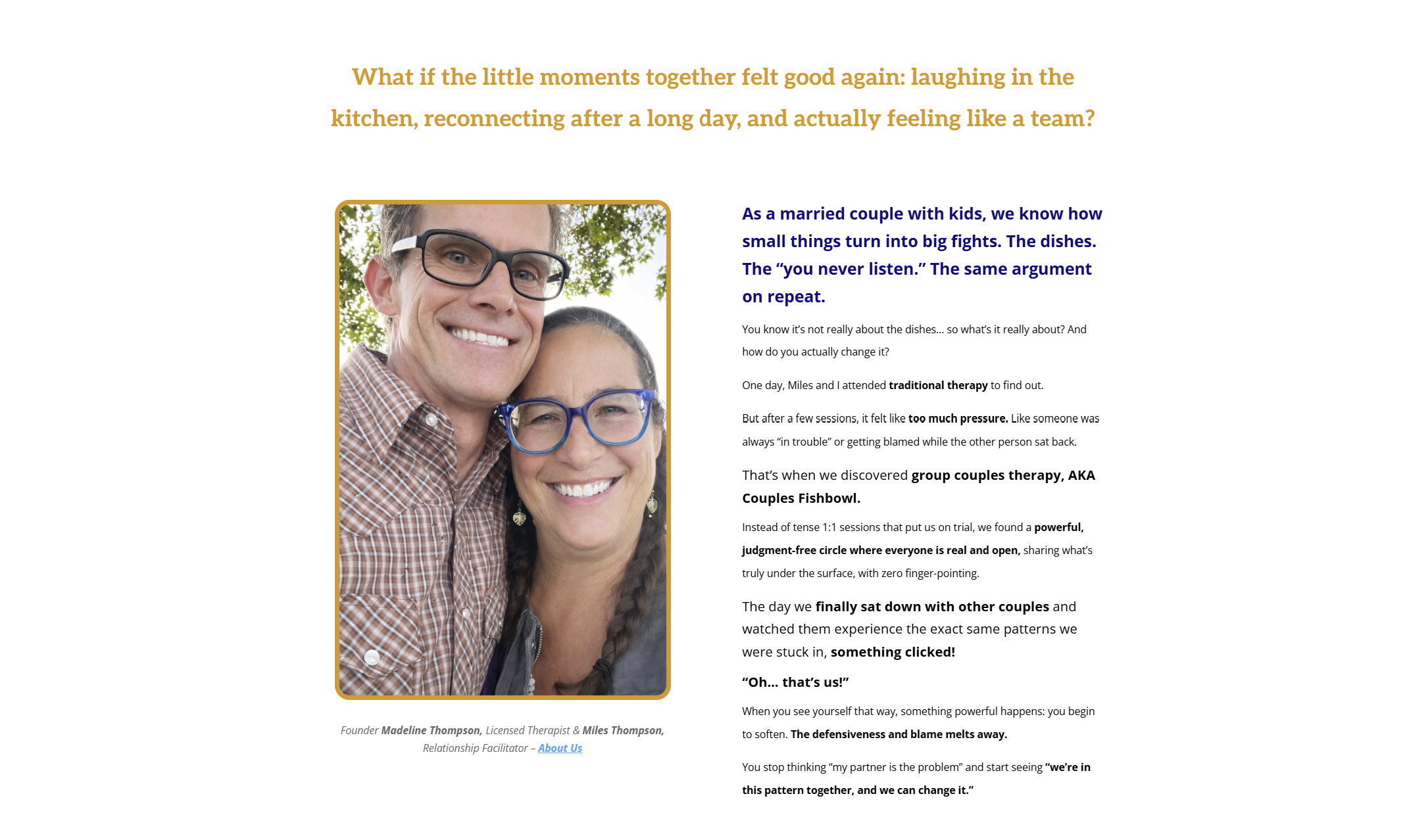 Powerful Sales Page for Licensed Therapist - Couples Fishbowl