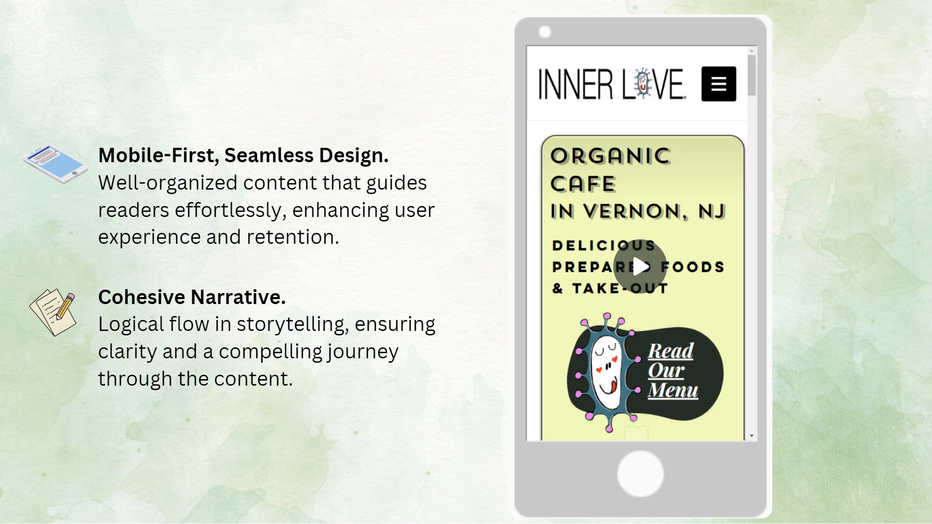 After extensive research, I handpicked the perfect keywords to elevate Inner Love Café’s rank in Vernon, NJ & Sussex County, showing a concrete improvement in keyword visibility within the first 30 days.