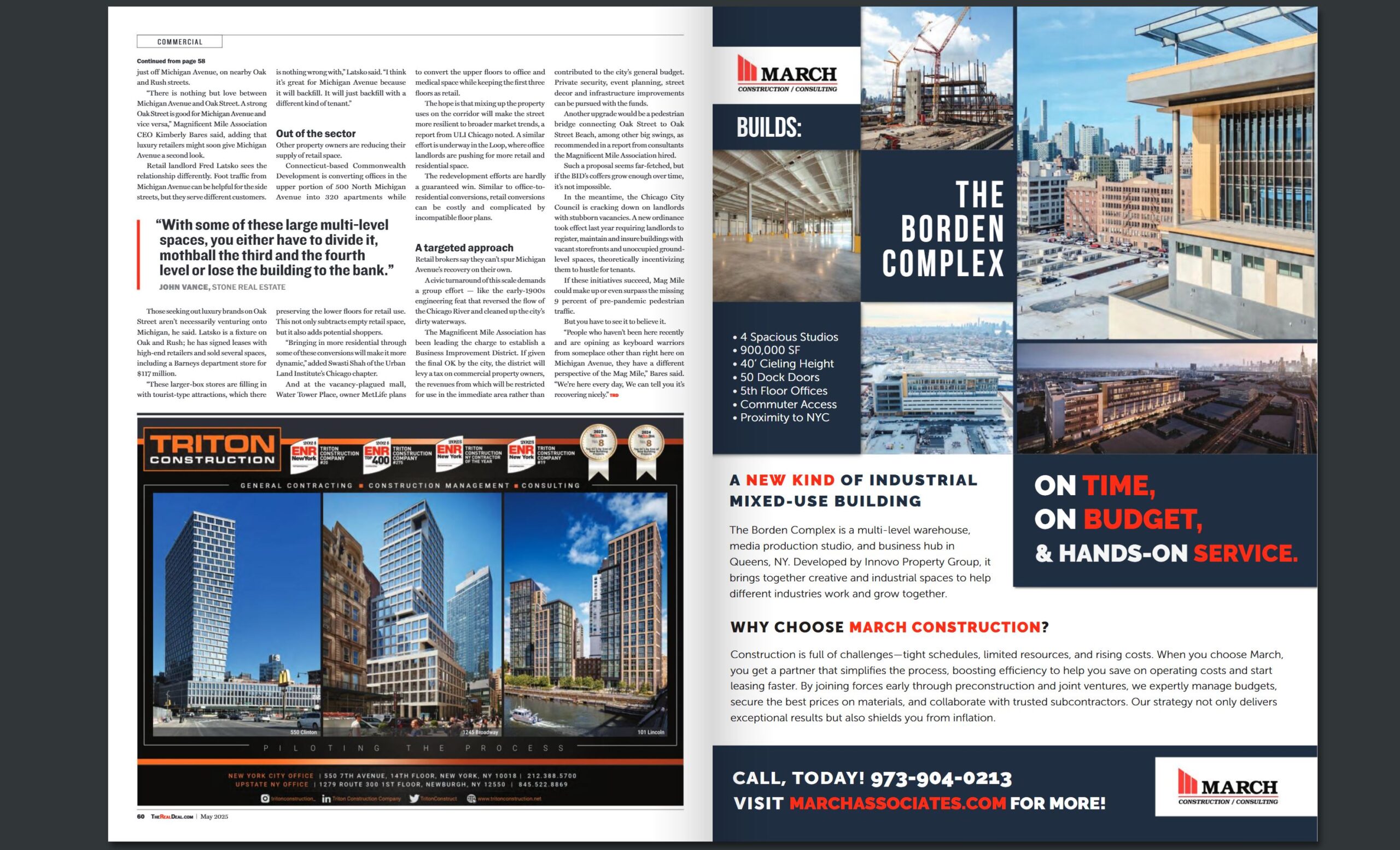 Please see below example of a recent full-page ad designed by me using adobe illustrator and published in The Real Deal (Right Side – The Borden Complex – 2025).
